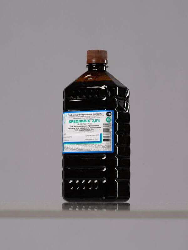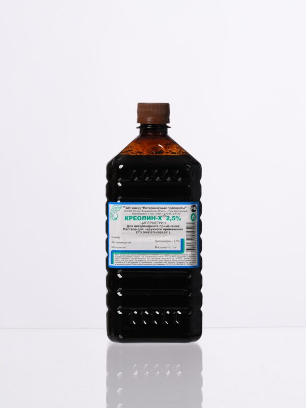 Креолин-Х — предназначен для профилактики и лечение арахно-энтомозов животных. Инсектоакарицидное лекарственное средство в форме раствора для наружного применения, содержащее в качестве действующего вещества 2,5% или 5% циперметрина.