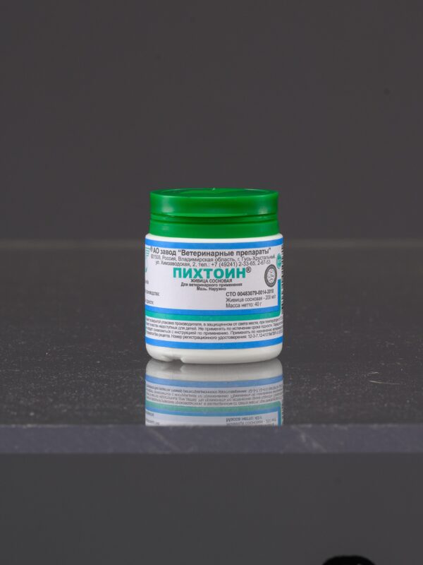 — предназначена для лечения ран, ожогов, травматических повреждений тканей, экзем, дерматитов, бурситов, маститов, ушибов, папиллом и язв у животных. В качестве действующего вещества содержит живицу сосновую (20%).