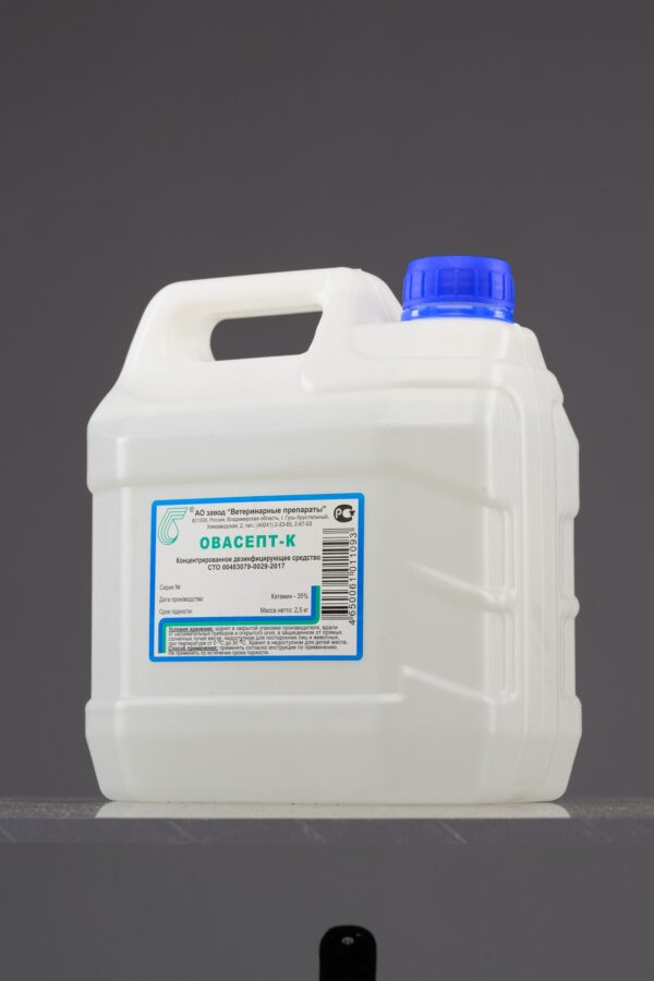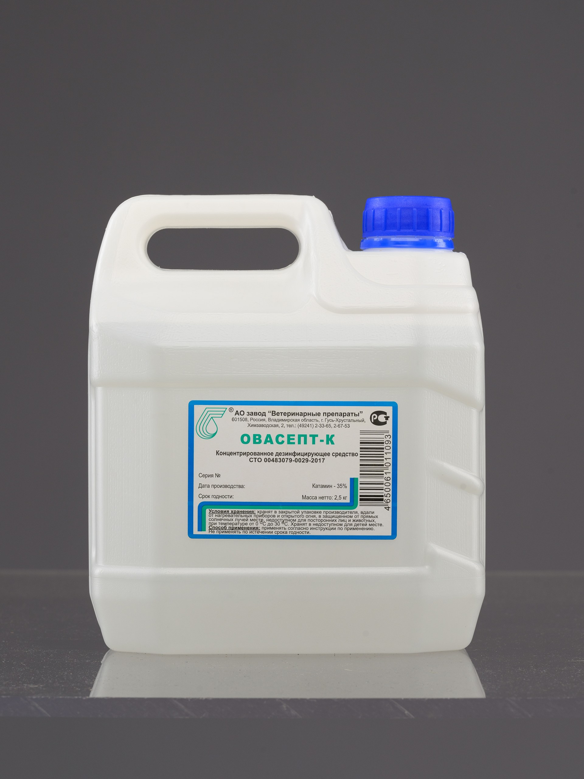 Овасепт-К — разработан для дезинфекции на птицеводческих и птицеперерабатывающих предприятиях. Лекарственное средство в форме раствора, содержащее в качестве действующего вещества (35%) катамина АБ (алкилдиметилбензиламмония хлорид).