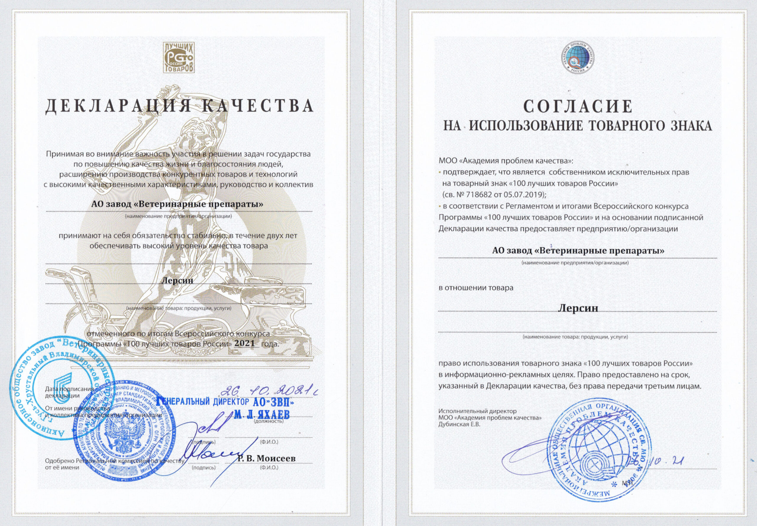 был внесен в список 100 лучших товаров России с присвоением декларации качества.