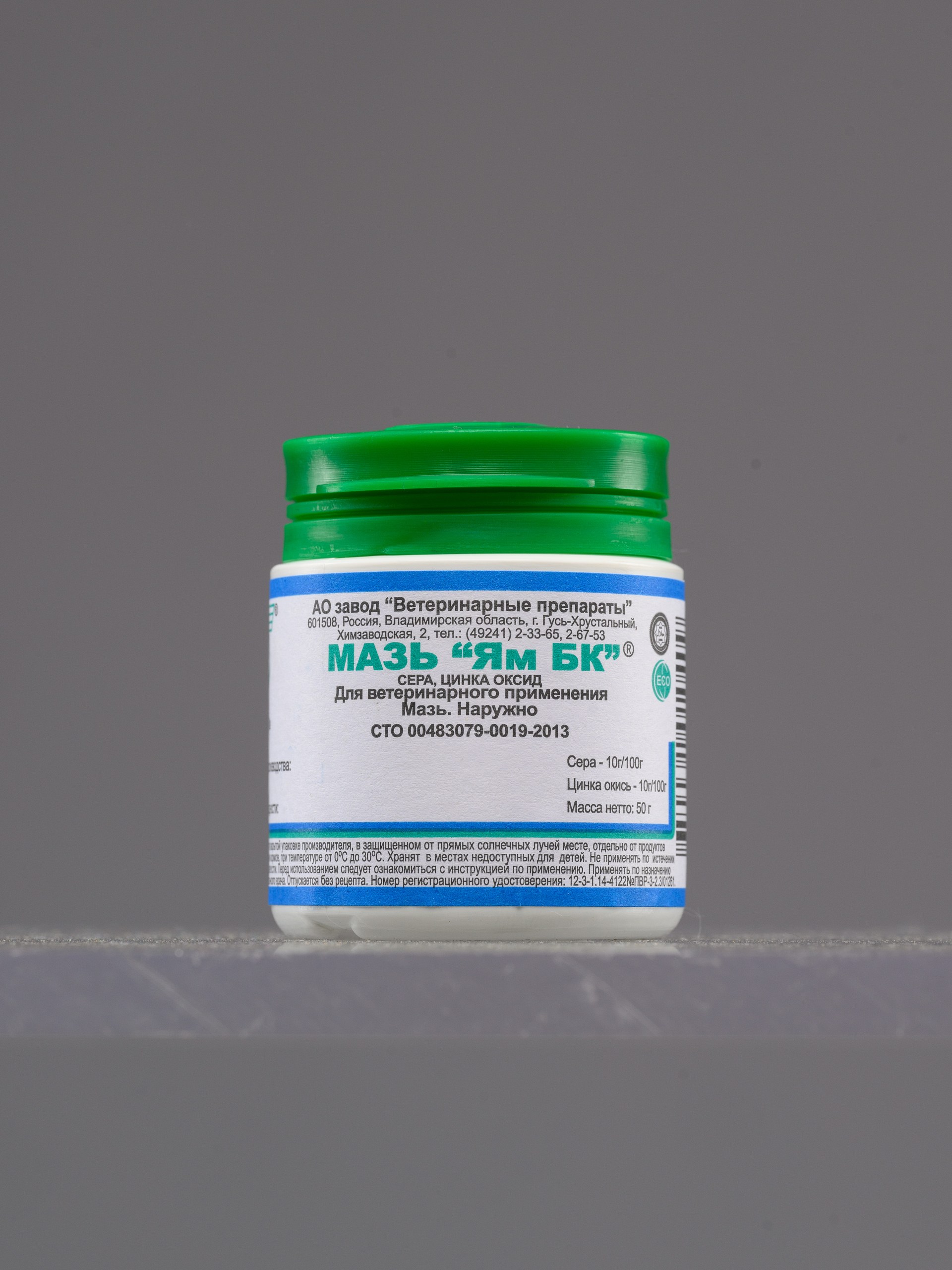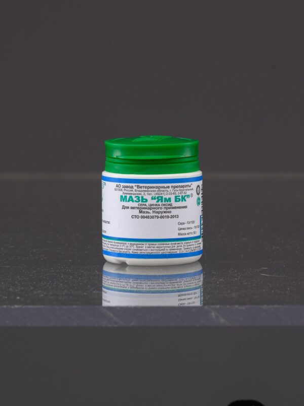 — используется для лечения животных при экземе, дерматитах, трихофитии и других заболеваниях кожи. Входящие в состав мази компоненты обладают акарицидной и фунгицидной активностью, антацидным, антисептическим, кератолитическим, вяжущим свойствами.